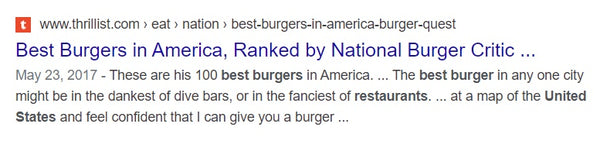 Take this burger ad meta description as an example: